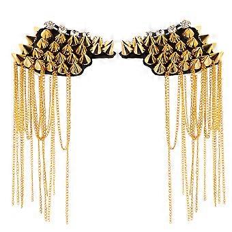 2pcs Golden Alloy Tassel Chain Epaulet for Decoration with Fringe Design and Wide Uses