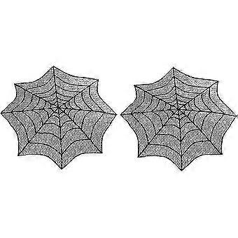 2pcs Halloween Tablecloth Lace Spiderweb Table Cloth, 30-Inch Round Table Topper for Halloween Table Decorations and Festive Parties Suitabl