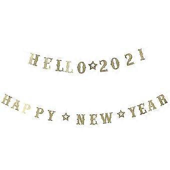 2pcs Happy New Year Hanging Banner Hello 2021 Sign Banner Party Layout Props
