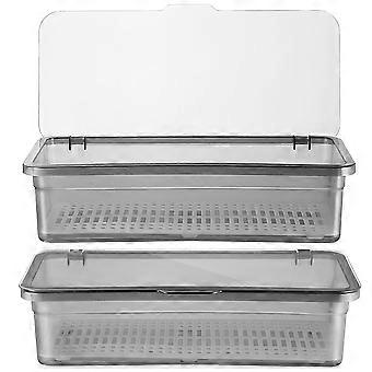 2pcs Lid Chopsticks Storage Case with Draining Shelf, Plastic Utensil Holder Box for Kitchen Organizer, Dustproof Cutlery Container with Cover for