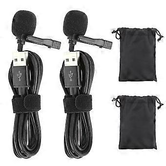 2Pcs Mini USB Microphone Compact Professional Wired Lapel Collar Clip for Interview