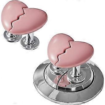 2pcs Plastic Toilet Button Pusher, Heart-Shaped Toilet Tank Button, Drawer Handle Suitable for Bedroom and Kitchen, Pink Color