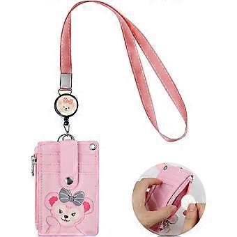 2pcs PU Lanyard Card Holder, 5 Card Slots and 1 Zipper Pocket, Total Length 57cm, Badge Holder with Retractable Buckle