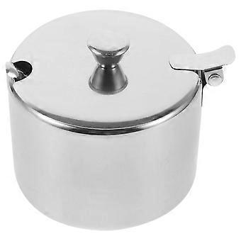 2Sets Stainless Steel Sugar Canister with Spoon for Storage Use Silver
