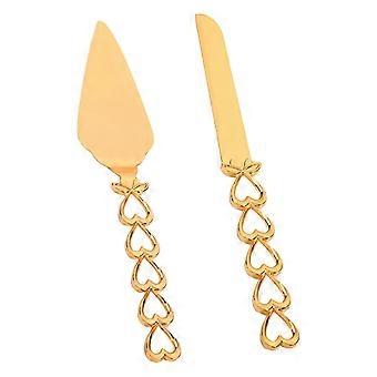 2x Gold Cake Knife Server Set Pizza Spatula Cake Cutter Events Wedding