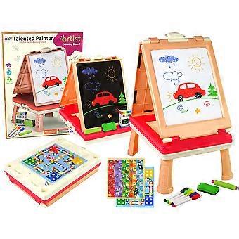 3-i-1 dubbelsidigt spelbord: krita, markörer och brädspel