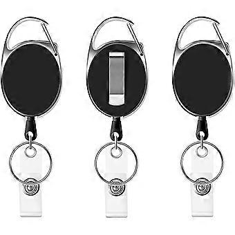 3 Pcs Retractable Keyring, Heavy Duty Reel Clips Retractable Lanyard Badge Reels Keychain for Holding a ID Card Holder, Pass Card Badge , Keys or Cell