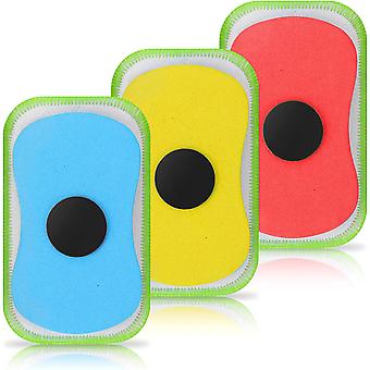 3 Washable Erasers for Blackboard, Magnetic Board Eraser Whiteboard Eraser Dry Eraser Reusable Chalk Eraser for Chalk Classroom Markers(Blue+Yellow+Re