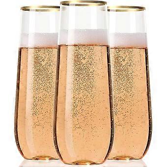 30 Plastic Stemless Champagne Flutes - Disposable Unbreakable 9 Oz toasting glasses, With Gold rim | Reusable, Clear, Fancy & Shatterproof Champagne G