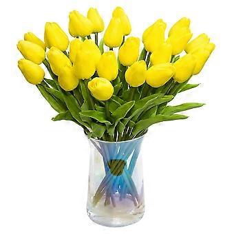 30Pcs Artificial Tulips Flowers Real PU Tulip Bouquet Latex (Yellow)