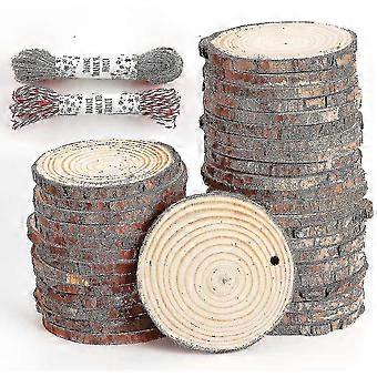 30pcs Natural Wood Slices 6-7cm Log Discs Wooden Circles With Natural Jute Twine