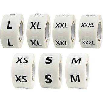 3500 round clothing size sticker labels in 7 full sizes (XS, S, M