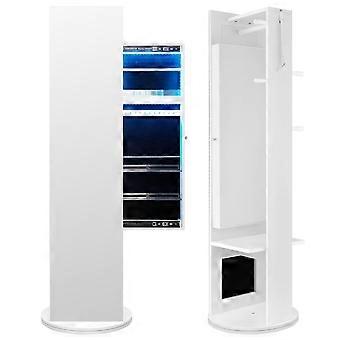 Multifunctional 3-in-1 design: mirror, jewelry cabinet and wardrobe360° rotating base for easy accessGenerous storage with compartments, hooks and shelvesIntegrated tri-color LED lights for increased visibilityCompact size ideal for small spaces