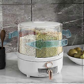360 Degree Rotating Grain Dispenser Plastic 6 Compartments Kitchen Storage Container For Rice Beans White 6.5kg / 14.3 Lb