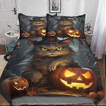 3D Halloween Black Cat Effect Comforter Set for Children and Adults with Pillowcases