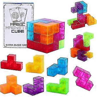 3d Magnetic Building Blocks Magic Magnetic Cubes, Set Of 7 Multi Shapes Magnetic Blocks With 54 Guide Cards