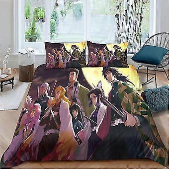 3D Print Demon Slayer Duvet Cover Bedding Set, 3 Pcs Animation Quilt Cover Pillowcase with Zipper Closure Soft Microfiber Double
