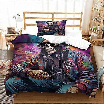 3D Printed Human Skeleton Bedding Set Ultra Soft Microfiber Quilt Cover with Zipper Closure for Teens Adults 2-Piece Set