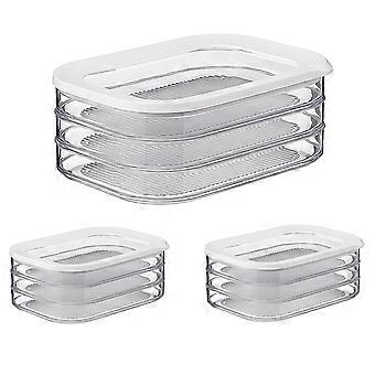 3PCS 1.6L with 3 Tier Meat Pieces Storage Box Airtight Lid Dishwasher Safe 3Layer Crisper