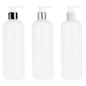 3PCS 500ml Refillable Plastic Bottle Empty Pump Bottle Travel Dispenser for Shampoo Shower Gel Liquid Soap White (Random Lid Color)