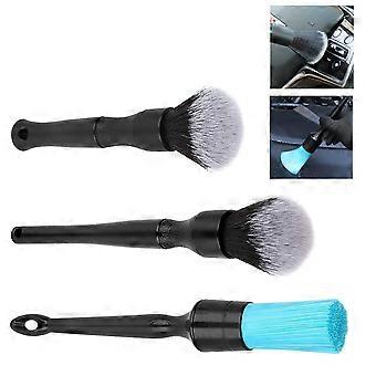 3Pcs Car Detailing Brush Set Soft Boar Hair No Scratch Microfiber Kit For Dashboard Air Vents Emblems Engine Bay Wheels