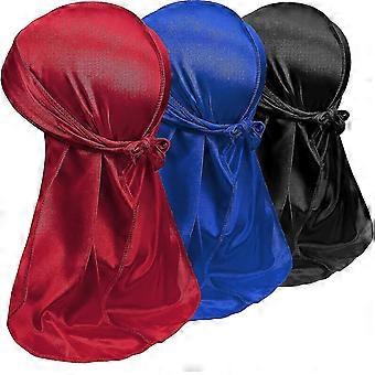 3pcs Silky Durag Packs For Men, Doo Rags For 360 540 720 Waves, Adward 1 Wave Cap (red+blue+black))