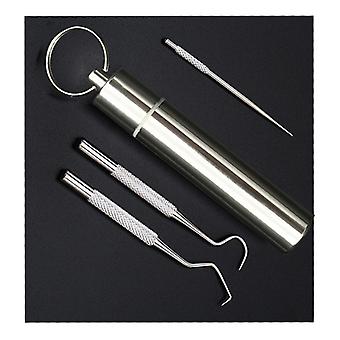 3Pcs Stainless Steel Toothpicks Cleaning Tooth Hook Scraper Portable Toothpick with Keychain Box for Home Travel