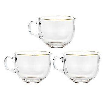 3pcs Trimmed Glass Cups for Milk, Coffee & Water – Stylish, High Transparency Drinkware for Home, Office and Restaurant Use – Elegant Design, Safe