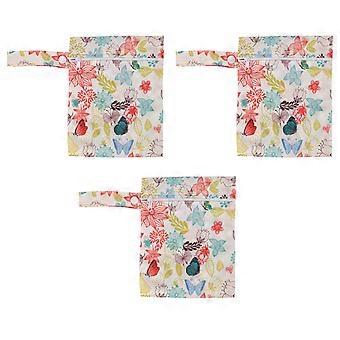 3pcs Water Resistant Wet Bag Miniature Printed Portable Hanging Reusable Diaper Wet Bag for Travel T05