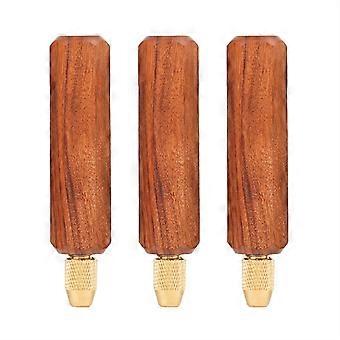 3Pcs Wooden File Handle Small File Handle with Brass Collet Chuck File Handle for Woodworking Metal