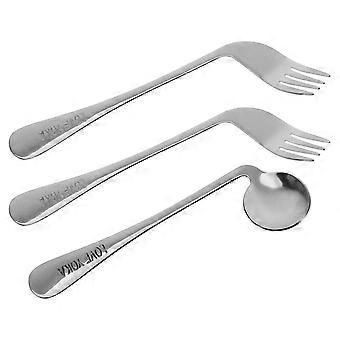 3Sets Angled Spoon Fork for Feeding Eating Lightweight Silver Stainless Steel