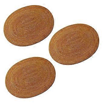 3X Rattan Woven Placemats Oval Round Table Mats Non Slip Heat Resistant Place Mat Natural Multipurp