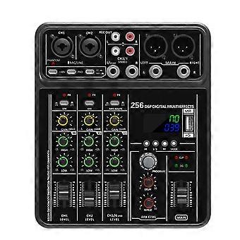 4 Channel Audio Mixer 48V Phantom Power USB Studio Sound Mixers Bluetooth DJ Console Mixing for Karaok