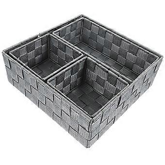 4 Grey Woven Storage Boxes for Office, Desk, Kitchen & Bathroom – Versatile Bins for Home Organization & Sundries Storage