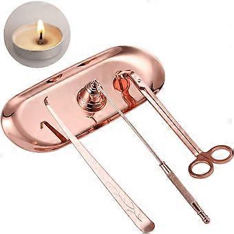 4 in 1 candle accessory set - candle wick trimmer, candle wick ladle, candle wick snuffer, storage tray, rose gold