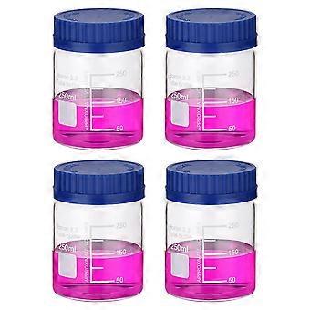 4 Pack 250ml Borosilicate Glass Wide Mouth Graduated Round Bottles