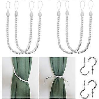 4 Pack Curtain Rope Tiebacks, Drapery Rope Holdbacks with 4 Metal Screw Hooks (White)