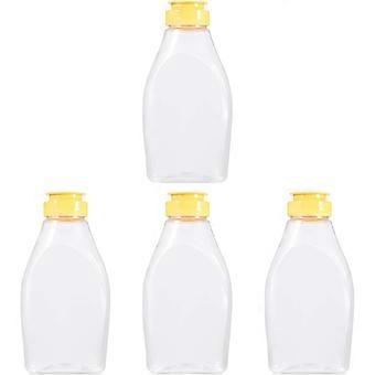 4 Pack Plastic Honey Jars with Lid and Small Honey Container for Shop, Cafe, Kitchen, Home (500g Capacity)