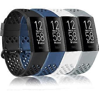4 Pack Sport Bands Compatible with Fitbit Charge 4 Bands and Fitbit Charge 3 Bands Silicone Replacement Wristbands ,Small, Blue/Black/Gray/White