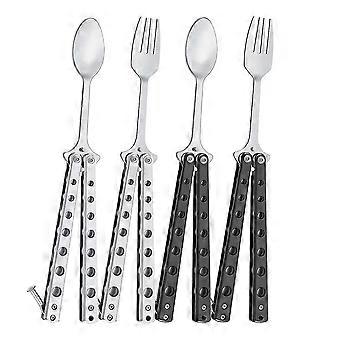 4 Pcs Butterfly Fork And Spoon Set Butterfly Spoon Fork Folding Stainless Steel Forks And Spoons Fo