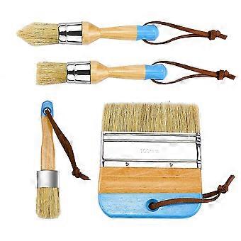 4 Pcs Chalk And Wax Paint Brushes, Stencil Natural Bristle Brushes Set For Furniture Wood Home Decor, Including Flat Pointed Round Large Flat Chalked