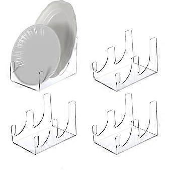 4 Pcs Display Stand,2-Tier China Platters Holder,Acrylic Plate Stands for Display Clear Kitchen Cabinet Organizer