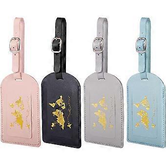 4 Pcs Pu Leather Luggage Tag Writable Travel Suitcase Tag with Adjustable Buckle for Handbag Pets, Airplane