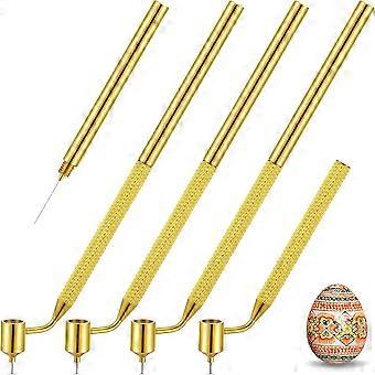 4 Pcs Pysanka Set Wax Drawing Pens for Egg 0.3 0.4 0.5 0.7 mm Medium Metal Hand Wax Pens for Pysanky Supplies