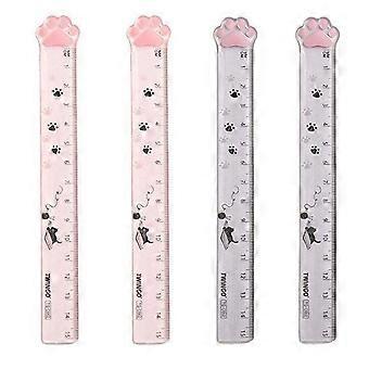 4 Pieces Cat Paw Rulers Set - Kawaii Plastic Measuring Tools for School Office Crafts in Pink Grey Non-Slip Design