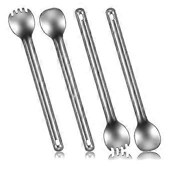 4 Pieces Titanium Long Handle Spork And Spoon Ultralight Portable Flatware For Outdoor Camping Back