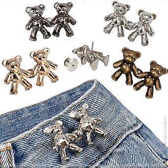 4 Sets Cute Bear Button Pins for Jeans, No Sew and No Tools Instant Pant Waist Tightener, Adjustable Jean Buttons Pins for Loose Jeans Replacement Pan