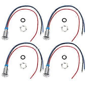 4 Sets PreWired Round LED Metal Waterproof 2Color Indicator Common Cathode 10mm 12-24V (Red and Blue)