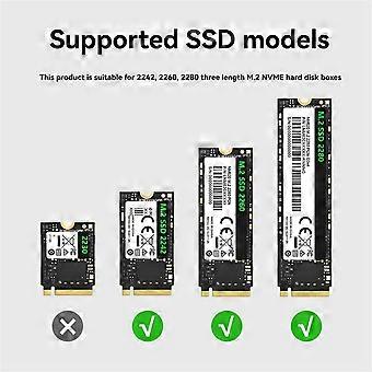 High-Speed Data Transfer: Experience blazing-fast data transfer speeds of up to 40Gbps with our NVMe SSD enclosure, designed to connect via USB4.0 . Ideal for professionals and gamers who demand . Advanced Cooling System: Keep your SSD at optimal temperatures for consistent performance, thanks to the built-in cooling fan. This feature ensures your device operates efficiently without overheating. and Portable: Crafted from robust aluminum, this SSD case protects your valuable data . Its design makes it easy to carry, offering reliable protection and portability. Universal Compatibility: The enclosure supports M.2 NVMe SSD sizes including 2242, 2260, and 2280, making it versatile for different needs and setups. Product name: M.2 40Gbps SSD enclosure Item number: Supported protocol: NVMe protocol Suitable hard disk: M.2 SSD (2242, 2260, 2280) Supported interface: M-Key External interface: Type-C Transmission rate: 40Gbps Due to different batches, there may be differences in product appearance and printed text, which not affect use. Colour:Silver Material:ABS+aluminium alloy Package Contents: 1 * Mobile hard disk box Only the above package content, other products are not included. Note: Light reflection and different displays may cause the color of the item in the picture a little different from the real thing. The measurement allowed error is +/- 1-3cm.