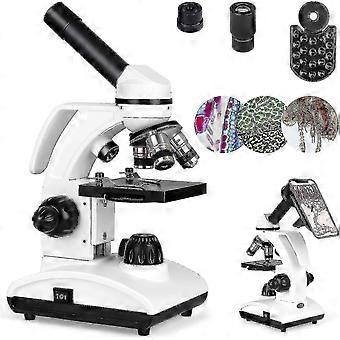 40x-1000x Microscope For Laboratories And Students, Compound Monocular With Handle, Eyepiece (wf10x/25x) And 10 Sliders, With Phone Adapter